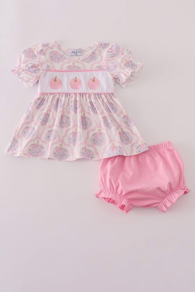 PINK PUMPKIN EMBROIDERY BLOOMER SET